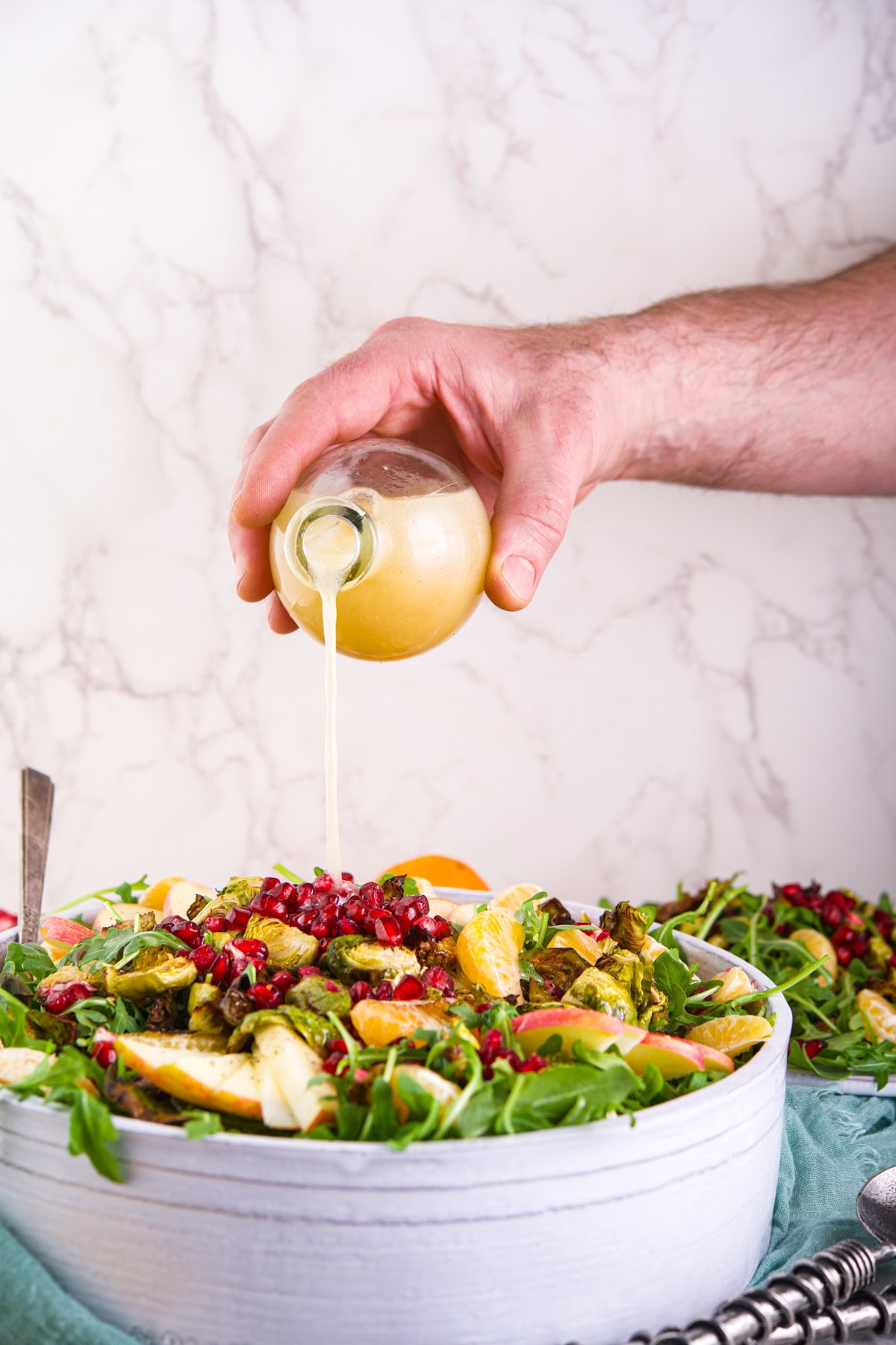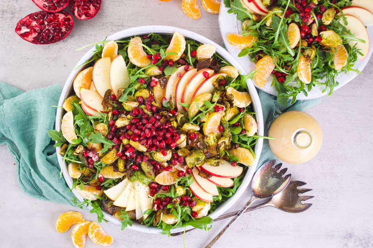 - Toss it with a fall salad of roasted Brussels sprouts, arugula, apples, and pomegranate seeds salad.