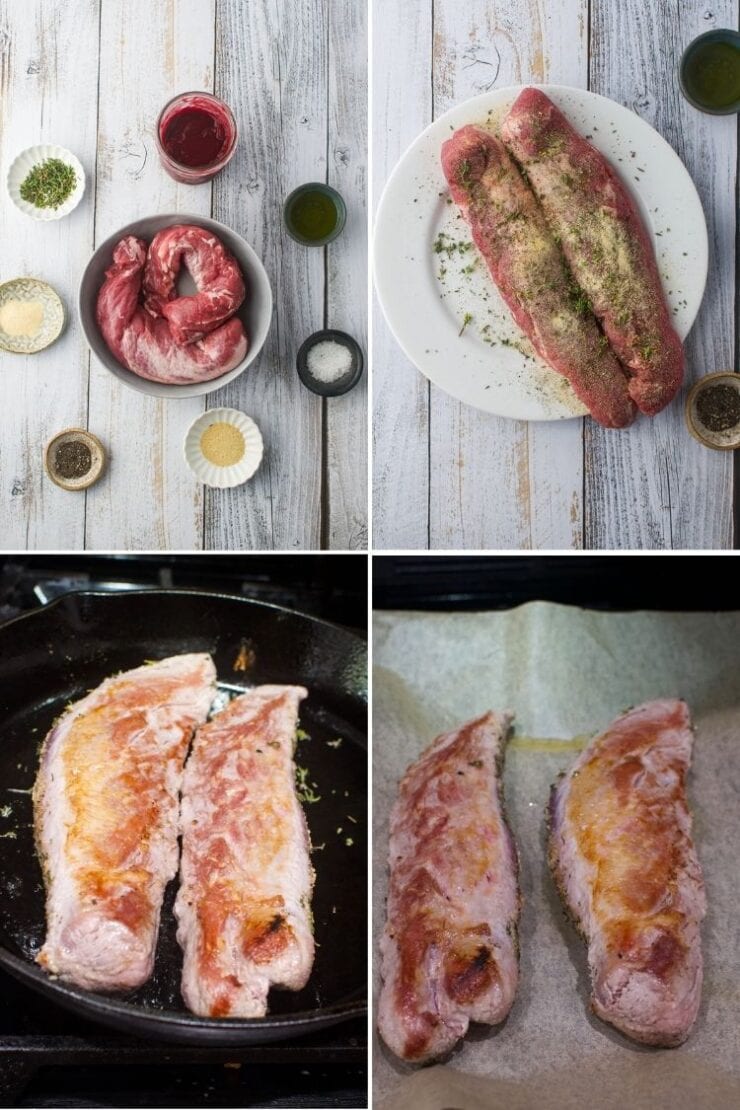 - Sear: In an oven-safe skillet, sear the pork on medium-high heat until golden brown on all sides.